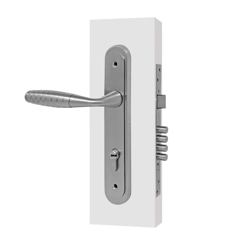 • Cerradura con mecanismo de embutir, con pestillo y 4 bulones.