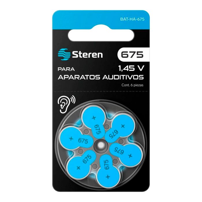 Pila tipo botón 675 para aparatos auditivos BAT-HA-675 Steren