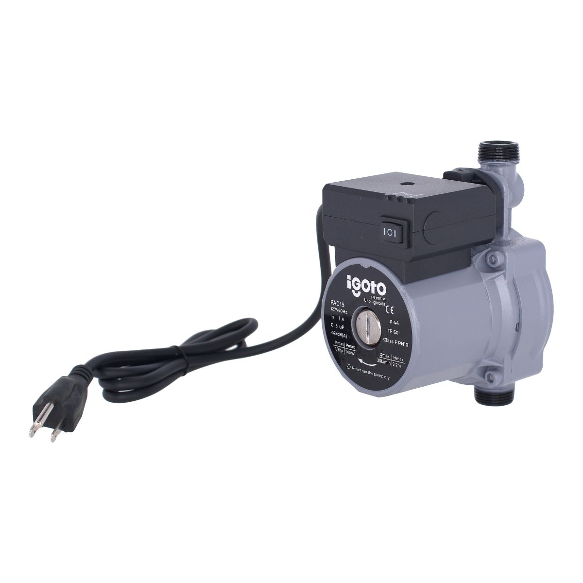 El presurizador automático PAC15 IGoto es la solución perfecta para mejorar la presión de agua en tu hogar. Con una potencia de 1/6 HP y un caudal máximo de 25 litros por minuto, este equipo garantiza un flujo constante y eficiente.