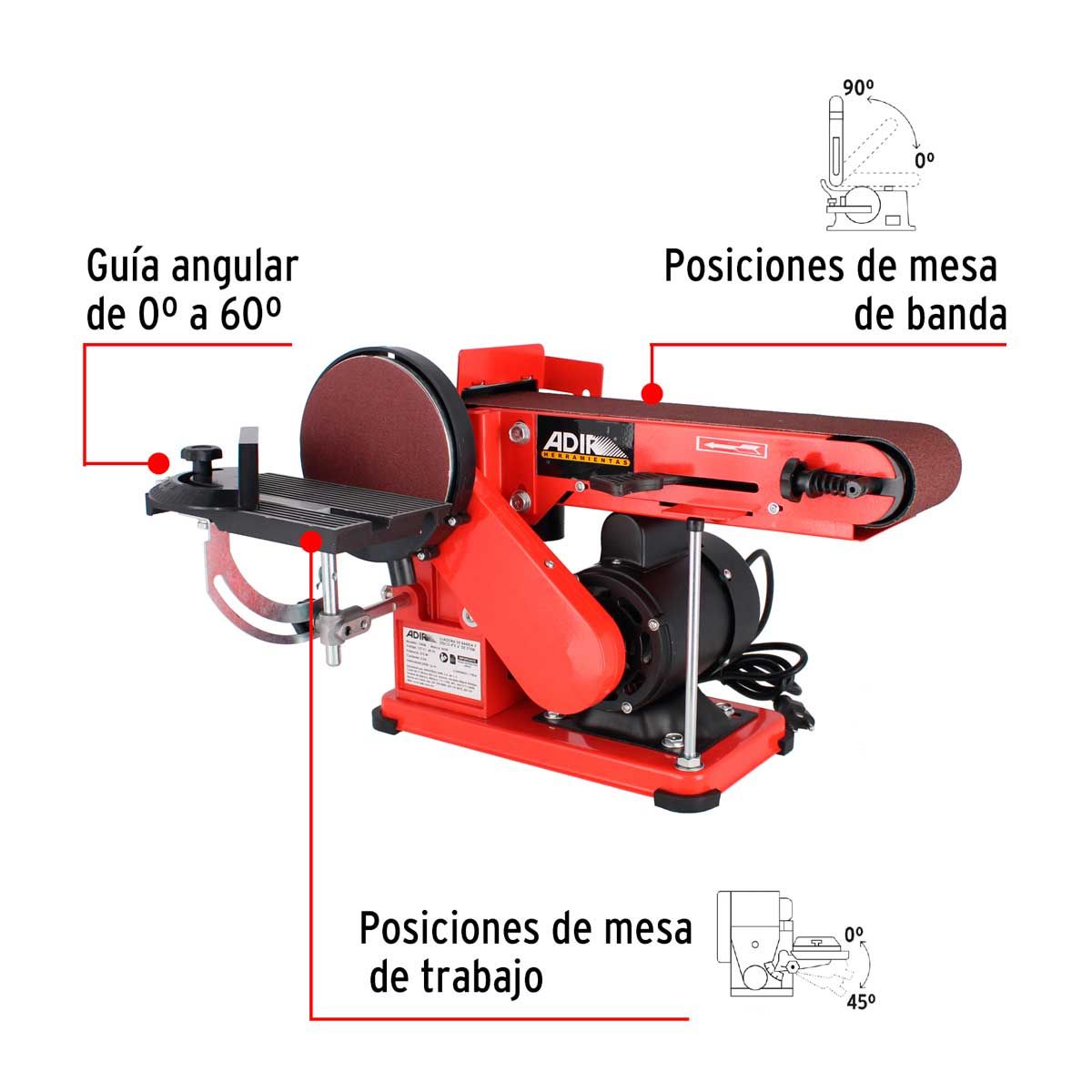 Lijadora de banda y disco 4" x 6" de 375 W 13438 Adir